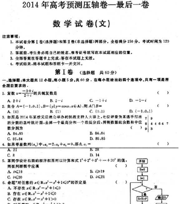 (江西地区)2014年高考预测压轴卷--最后一卷(数学文)扫描版