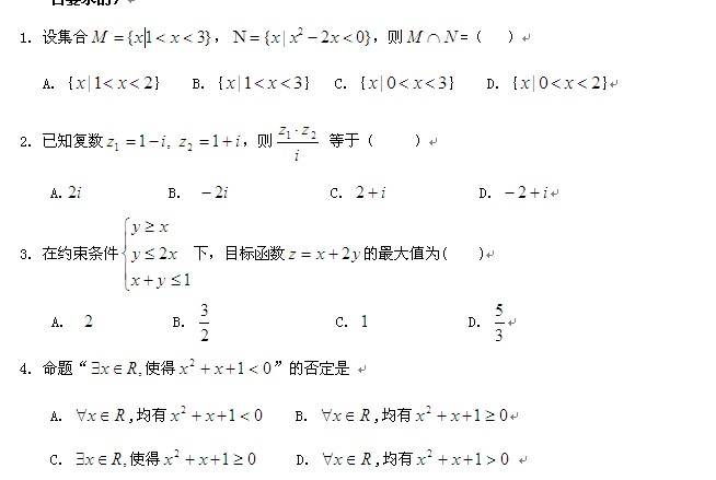 甘肃省张掖市肃南县第一中学2014届高三下学期期中考试(数学文)