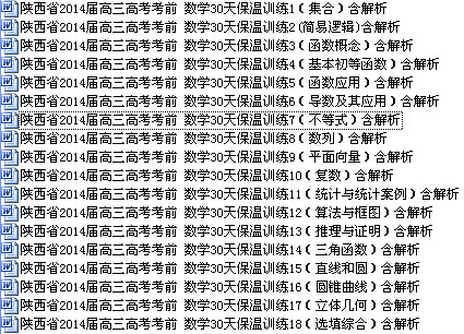 [打包下载]陕西省2014届高三高考考前 数学30天保温训练