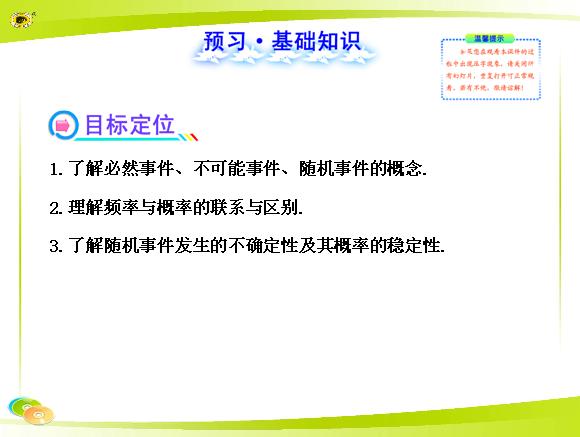 2013版高中数学全程学习夺冠方略配套课件:3.1随机事件及其概率(苏教版必修3)