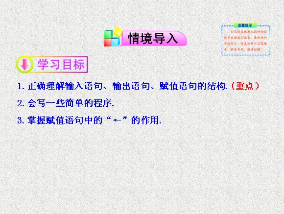 2013版高中数学全程学习夺冠方略多媒体课件:1.3.1 赋值语句 1.3.2 输入、输出语句(苏教版必修3)