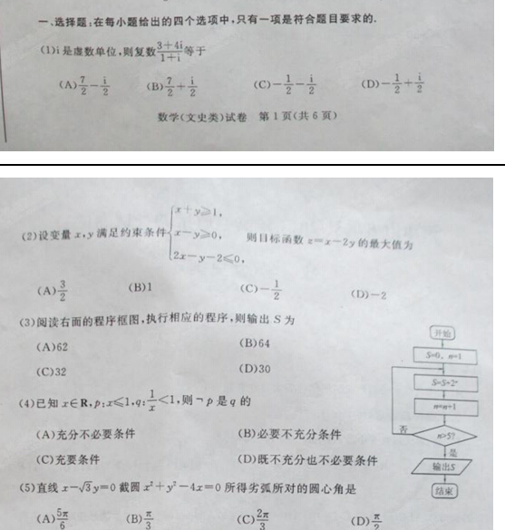 天津五区县2014届高三第二次模拟考试(数学文)扫描版