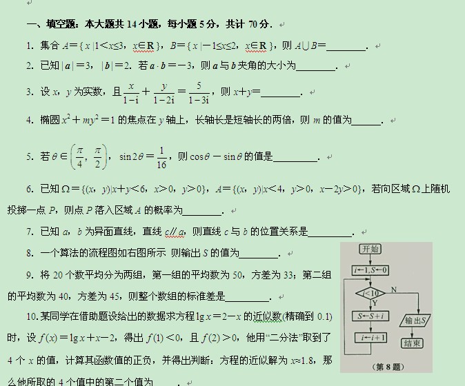 江苏省金陵中学2014届高三第二次仿真测试(数学)
