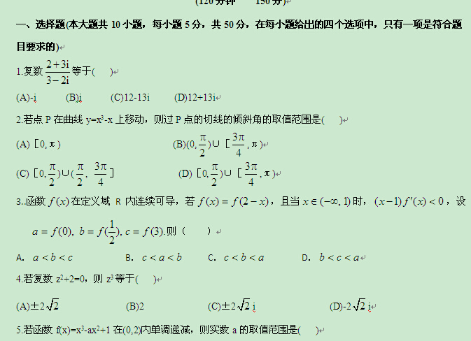 安徽省阜南县王店亲情学校2013-2014学年高二下学期第二次月考(数学理)
