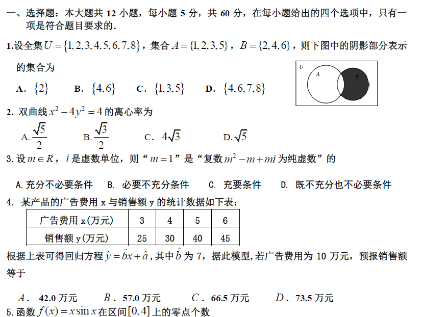 福建省福建师大附中2014届高三考前模拟考试(数学文)PDF版