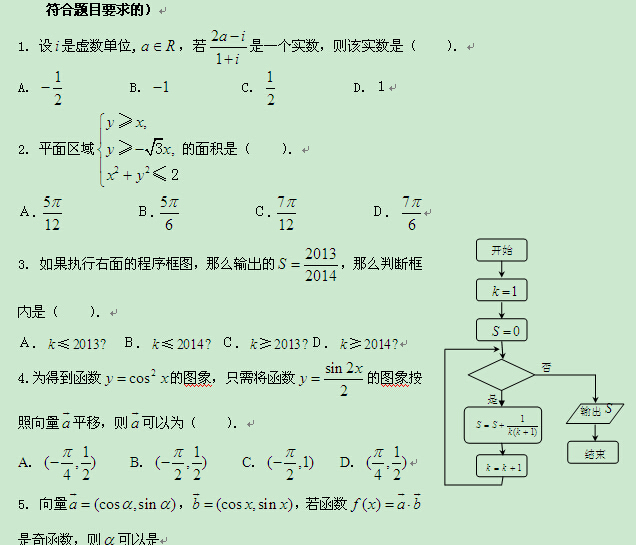 2014安徽省高考压轴卷(数学)理试题含解析