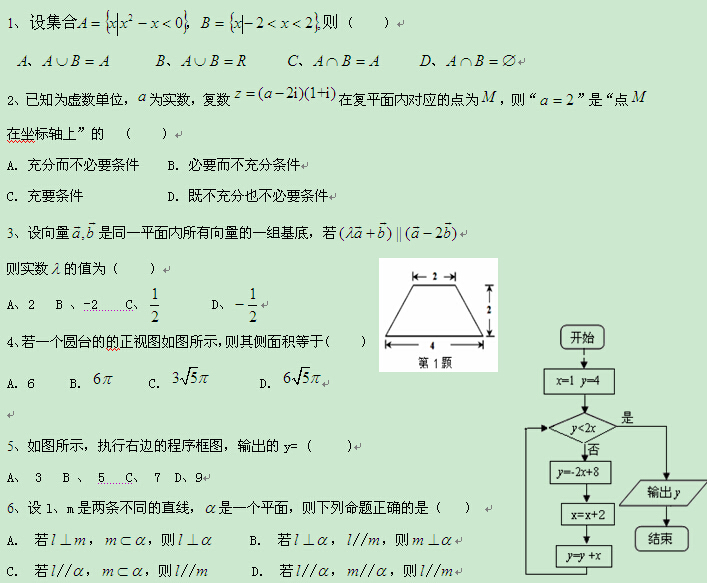 福建省四地六校2014届高三高考模拟试题(数学文)
