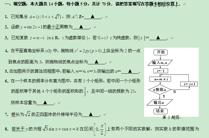 江苏省淮安市2013—2014学年度高三5月信息卷(数学)