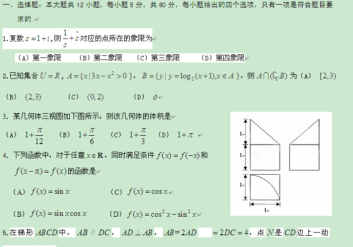 内蒙古赤峰市宁城县2014届高三5月模拟考试(数学理)
