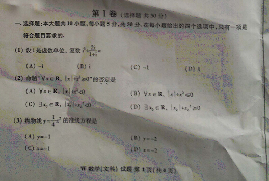 2014年普通高等学校招生全国统一考试安徽卷(数学文)扫描版