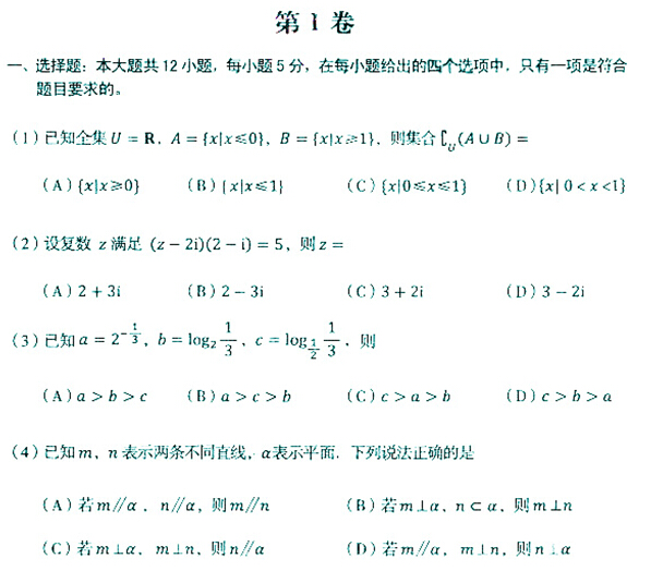 2014年普通高等学校招生全国统一考试辽宁卷(数学理)扫描版