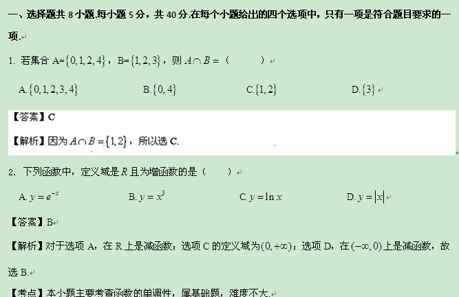 2014年普通高等学校招生全国统一考试北京卷(数学文)小题解析