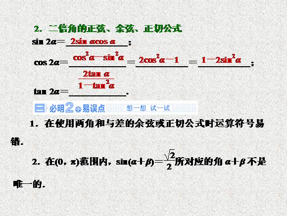 2015届高三数学(文)湘教版一轮复习配套课件:第3章 第5节 两角和与差的正弦、余弦和正切公式