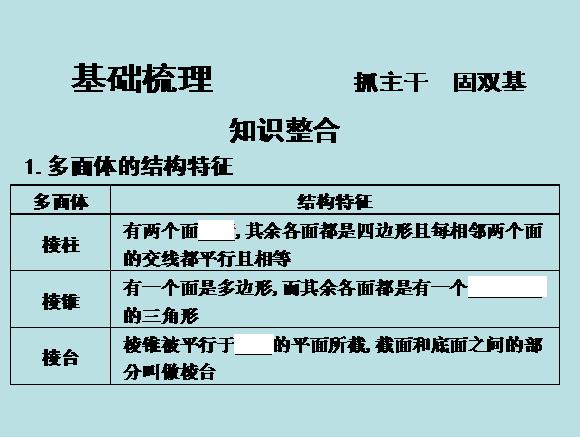 2015届高三数学(人教,文)一轮课件:第7篇 第1节 空间几何体的结构及三视图和直观图