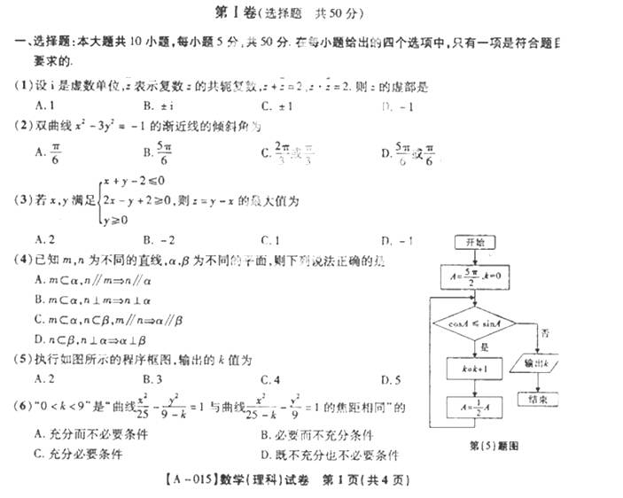 安徽省示范高中2015届高三第一次联考(数学理)(扫描版)
