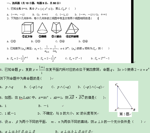 广东省广州市第六中学2015届高三9月第二次月考(数学文)