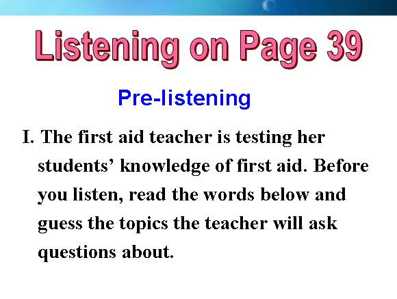 浙江省草塔中学高中英语必修5课件:Unit5 First aid Listening(人教版)