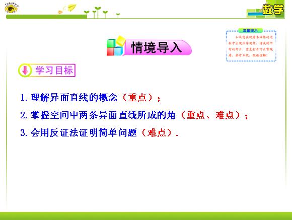 2013版高中数学课时讲练通多媒体教学课件:1.2.2 第2课时 异面直线(苏教版必修2)