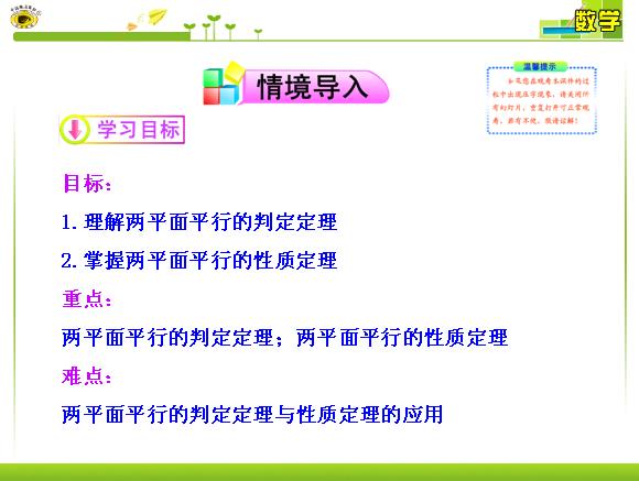 2013版高中数学课时讲练通多媒体教学课件:1.2.4 第1课时 两平面平行(苏教版必修2)
