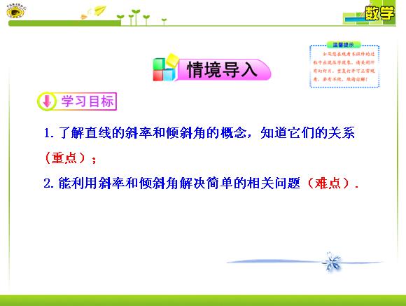 2013版高中数学课时讲练通多媒体教学课件:2.1.1 直线的斜率(苏教版必修2)