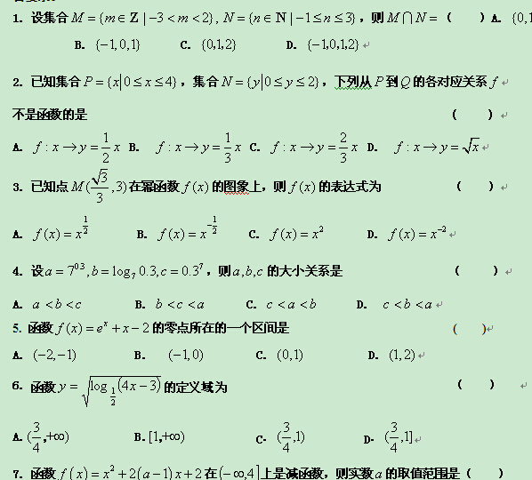 福建省厦门六中2014-2015学年高一上学期期中考试(数学)