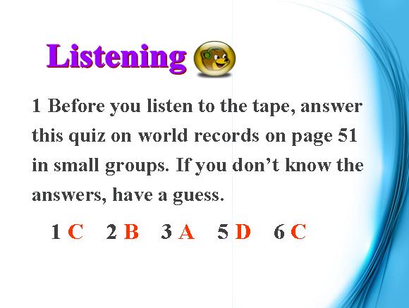 2014-2015(高中英语)人教版选修9课件:Unit1 Breaking records P5 Workbook-listening
