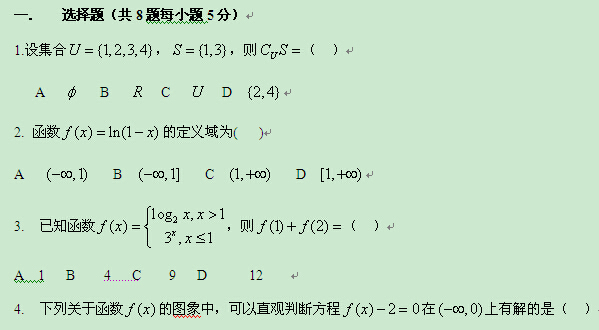 福建省泉州市2014-2015学年高一第一学段新课程模块水平测试(数学)
