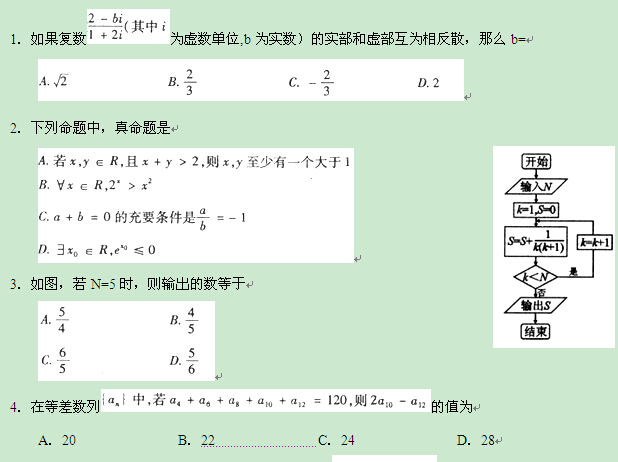 四川省德阳市2015届高三第一次诊断考试(数学文)缺答案
