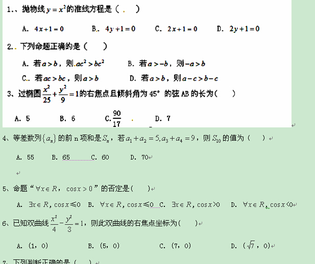 内蒙古第一机械制造集团有限公司第一中学2014-2015学年高二上学期期末考试数学(文)试卷