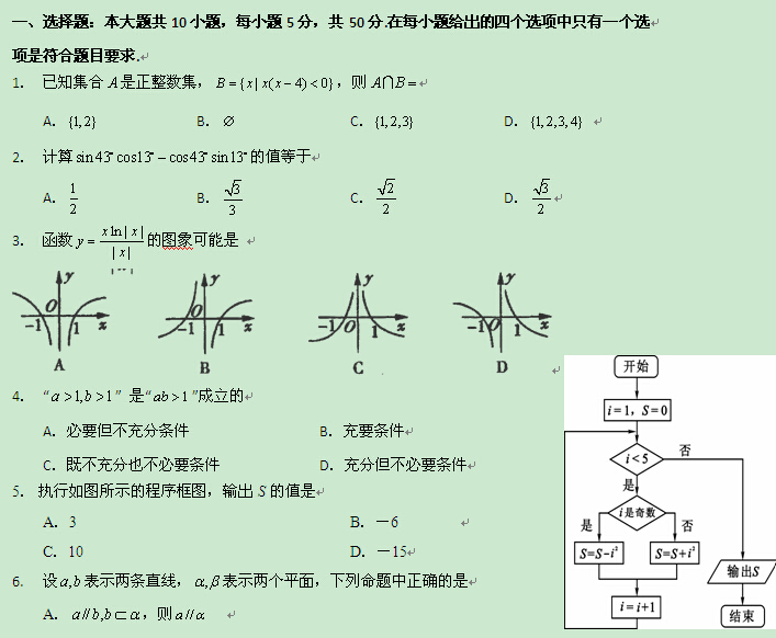 四川省泸州市2015届高三第二次教学质量诊断性考试(数学文)