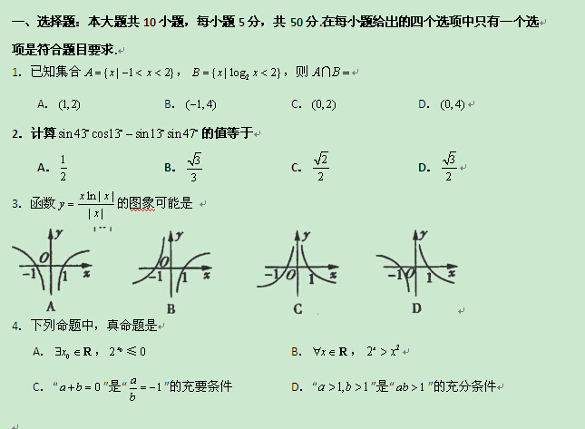 四川省泸州市2015届高三第二次教学质量诊断性考试(数学理)