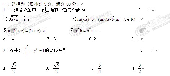 黑龙江省佳木斯一中09-10学年高二上学期期末考试(数学)