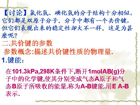2014-2015学年高二化学鲁科版选修3同课异构课件:2.1.2 键参数