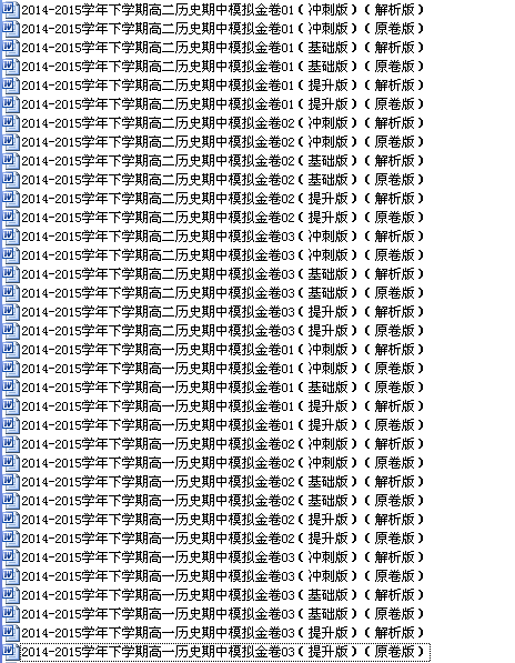 【打包35份】2014-2015学年下学期高二历史期中模拟金卷