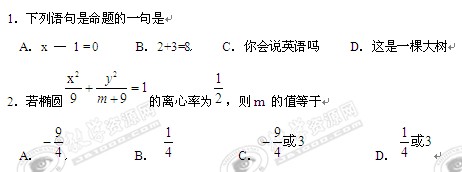 湖南省示范性中学(南县一中)模块月考(人教A版选修2-1)(1)