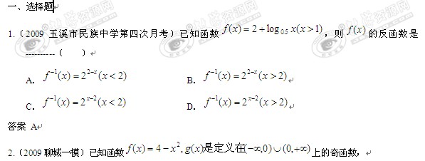 四年联考精选汇编:第二章 第二节 基本初等函数I
