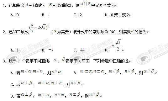 江西省九校2010届高三第二次联考(数学文)